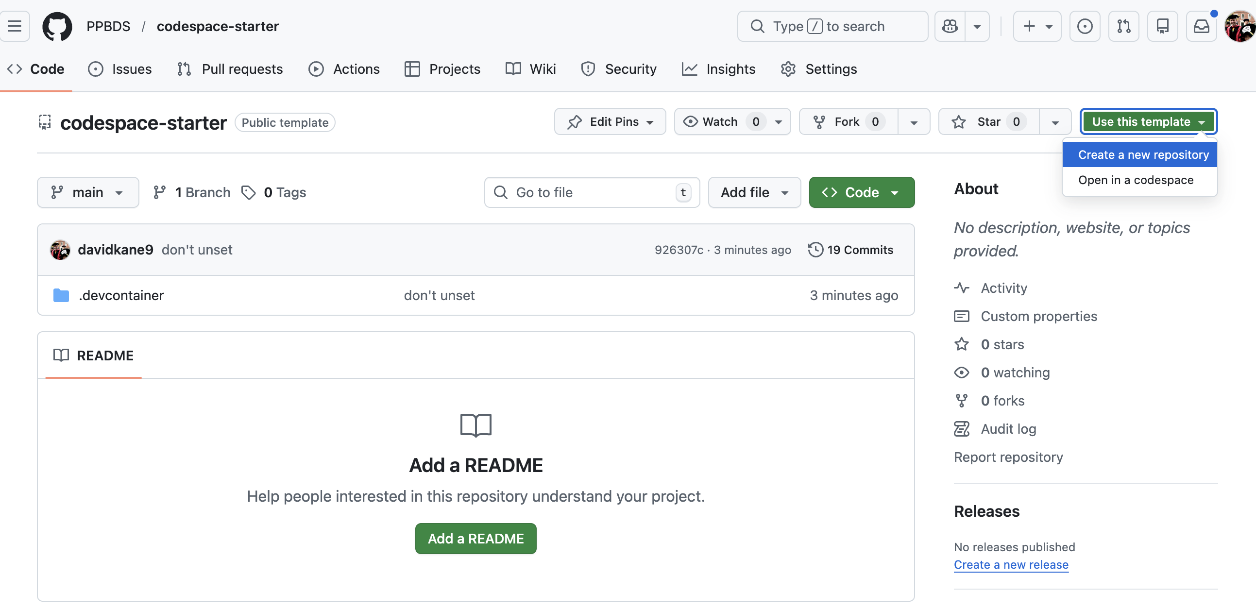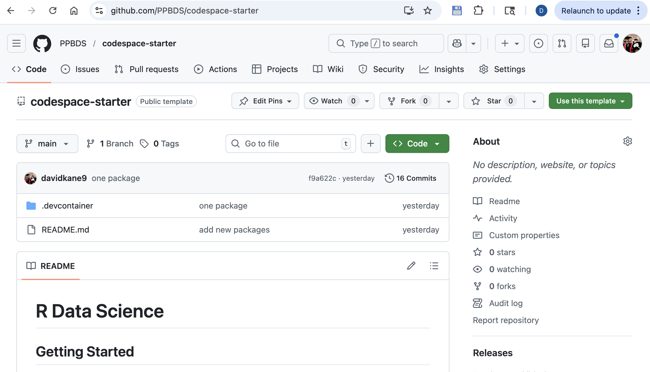 Created a codespace using https://github.com/PPBDS/codespace-starter as a template.
