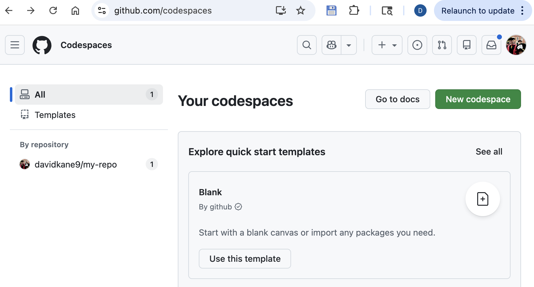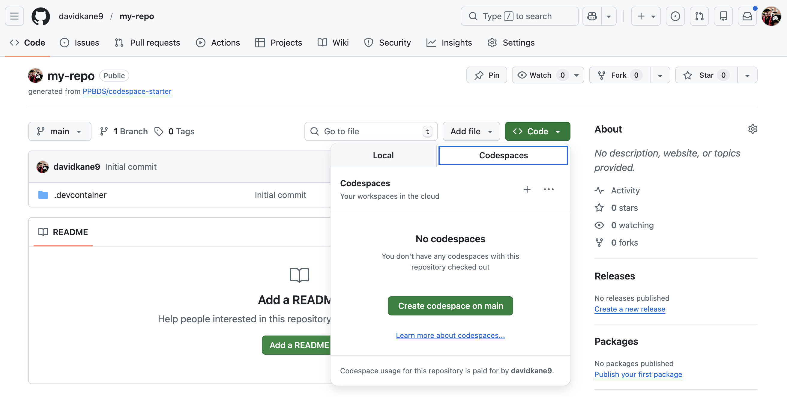Your first codespace